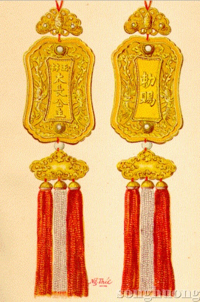 | Kim bài của Ngọc Lâm Thái Trưởng công chúa do họa sỹ Nguyễn Thứ vẽ trên chất liệu màu nước. Nguồn: Tập san BAVH (số 4/1915) |