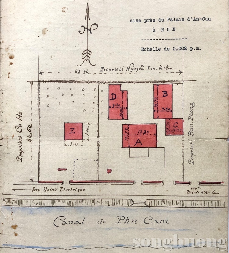| Bản vẽ mốc giới thửa đất tọa lạc đệ Ngọc Lâm công chúa vào năm 1930 |