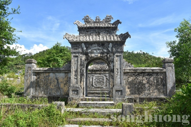 Phía sau bi đình là nấm mộ theo kiểu thức “noãn hình” (hình trứng) được xây trên liếp mộ hình chữ nhật. Đây là dạng thức phản ánh quan điểm triết lý Âm - Dương (trên trời/ tròn dưới đất/ vuông), biểu tượng của khát vọng trường tồn, sinh sôi nảy nở. Nấm mộ được đặt tại vị trí quan trọng nhất trong tổng thể khuôn viên tẩm mộ. Tiếp đến là bình phong hậu được giật cao hơn so với la thành. Bình phong xây theo kiểu cuốn thư trang trí hình chim phượng vờn mây bồng bềnh ở vị trí chính giữa tạo nên ấn tượng sinh động, kết hợp phía dưới bệ bình phong hoa lá “hóa” gắn liền với la thành. Bên cạnh hình tượng chim phượng là những motif quả lựu, quả đào, hoa lá được trang trí với bố cục cân xứng, vì vậy chim phượng như hòa mình vào hoa trái, chúng trở nên gần gũi, tao nhã mà vẫn linh thiêng, quý phái. Điều này cho thấy, trong quan niệm phương Đông, viên tẩm của các bà chúa là trang trí hình phượng chiếm vị trí chủ đạo, và cũng là sự tượng trưng cho đức hạnh và sắc đẹp của người phụ nữ Á đông.