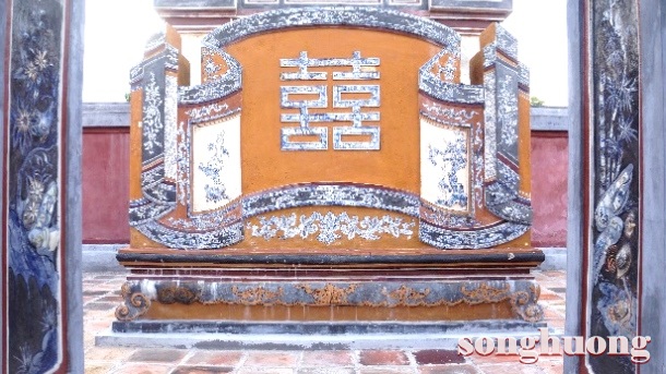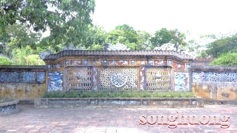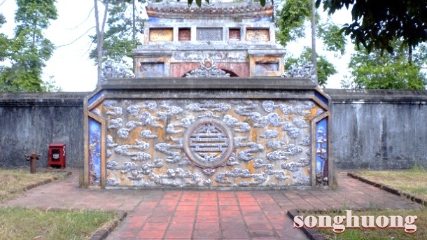 | Bình phong chữ “Song Hỷ” và chữ “Thọ” ở trước mộ vua Dục Đức và Hoàng hậu Từ Minh |