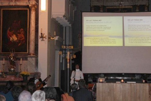 Thánh đường Vitznau (xây dựng 1839 - 1943) với tháp chuông màu lục trên nền trắng toát bên hồ Luzern Thụy Sĩ cách xa quê hương Quảng Bình - Quy Nhơn của nhà thơ Việt Nam Hàn Mạc Tử (1912-1940) đến hàng vạn dặm. Thế mà chiều 04/11 vừa qua hơn một trăm dân làng Vitznau(1) đã cùng với Đại Sứ Quán Việt Nam, quan khách ngoại giao và hơn một chục kiều bào Việt Nam đã đến dự buổi nhạc thơ Moondrunk - Say Trăng - Mondestrunken do nghệ sĩ Camille Huyền và nhạc sĩ Walther Giger biểu diễn nhân dịp kỷ niệm 100 năm sinh nhà thơ Hàn Mạc Tử.