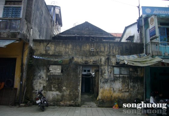 | Ngôi nhà được coi là tòa soạn báo Tiếng Dân xưa, vẫn dáng kiến trúc cổ, khác hẳn những cửa hàng xung quanh trên đường Huỳnh Thúc Kháng |