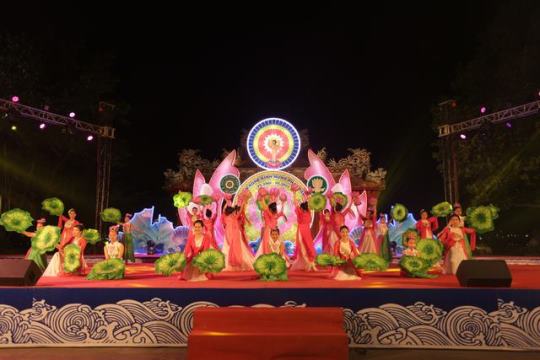 Tối cùng ngày, tại Nghinh Lương đình, thành phố Huế đã diễn ra chương trình văn nghệ với chủ đề “Hương sen kính Phật” do các đơn vị Gia đình Phật tử tỉnh Thừa Thiên Huế biểu diễn.