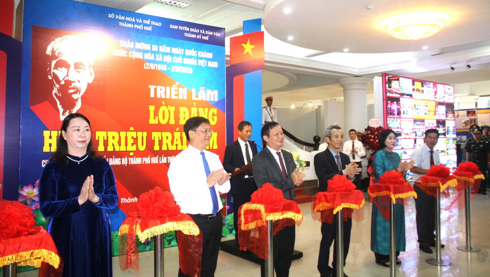 | Lãnh đạo Thành phố cắt băng khai mạc triển lãm. |