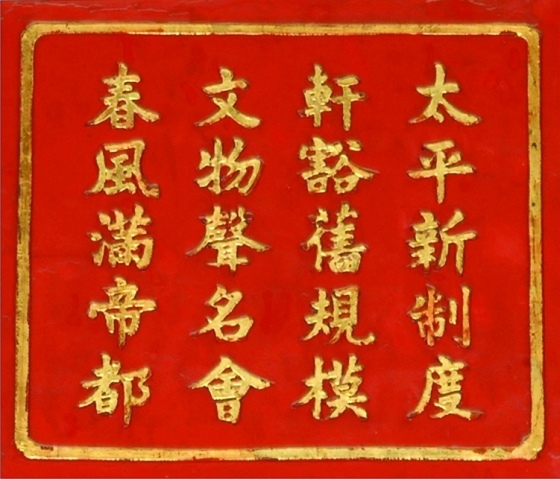 + Lễ nhạc siêu Tam Đại/ Thông minh khuếch tứ môn (禮 樂 超 三 代/ 聰 明 廓 四 門): lễ nhạc vượt cả thời Tam Đại11 / Sự thông minh khuếch tán ra bốn cửa;