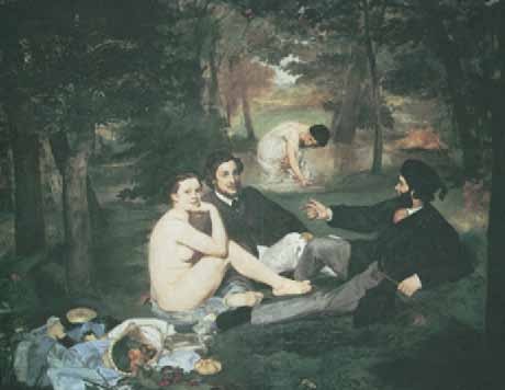 Bức tranh Luncheon On the Grass vẽ hình dáng người đàn bà khỏa thân, ngồi với hai người đàn ông mặc quần áo. Ảo giác về chiều sâu của thời Phục hưng đã biến mất. Bức tranh khác hẳn với loại tranh hiện thực của Courbet và trước đó, không tỉa tót, tô bóng để nhìn sự vật như thật. Đây là bức tranh có giá trị như một bước ngoặc, chuyển từ Hiện thực qua Ấn tượng, từ truyền thống qua hiện đại.