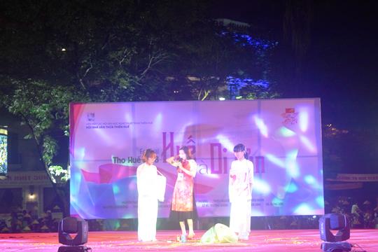 Tại đêm thơ, các nhà thơ xứ Huế đã trình diễn những bài thơ hay về tình yêu, về những khát vọng, những ước mơ, và về những chuyến đi thực tại hay cả trong tâm tưởng, những chuyến đi nối lại lịch sử và văn hóa các vùng đất.