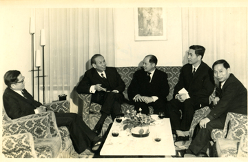| Đoàn Việt Nam DCCH tại Hội nghị Paris về Việt Nam. Đồng chí Nguyễn Minh Vỹ (ngoài cùng bên phải) - Ảnh: tgvn.com.vn |