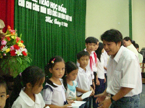 Tạp chí Sông Hương phối hợp với Học bỗng Vang Vang đã trao 65 suất quà cho con em bà con lao động nghèo, cụ thể là các cháu từ 5-10 tuổi con em các nghiệp đoàn xích lô xe thồ ở thành phố Huế.
