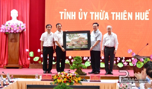 Sáng 16/7, Ủy viên Bộ Chính trị, Chủ tịch Quốc hội Vương Đình Huệ và Đoàn công tác đã làm việc với Ban Thường vụ Tỉnh ủy Thừa Thiên Huế về kết quả thực hiện Nghị quyết Đại hội Đảng bộ tỉnh lần thứ XVI; nhiệm vụ phát triển kinh tế xã hôi; Nghị quyết số 54-NQ/TW của Bộ Chính trị về xây dựng và phát triển tỉnh Thừa Thiên Huế đến năm 2030, tầm nhìn đến năm 2045; Nghị quyết 38/2021/QH15 của Quốc hội về thí điểm một số cơ chế, chính sách đặc thù phát triển tỉnh Thừa Thiên Huế.