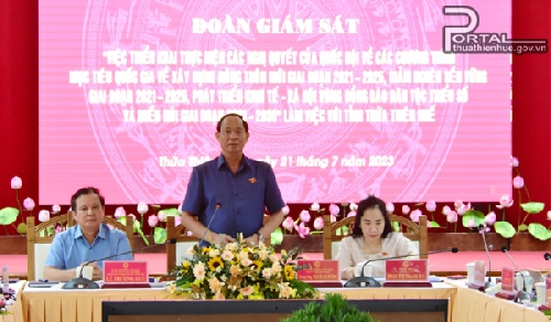 Chiều ngày 21/7, Đoàn giám sát của Quốc hội khóa XV do Ủy viên Trung ương Đảng, Phó Chủ tịch Quốc hội, Thượng tướng Trần Quang Phương làm Trưởng đoàn có buổi làm việc với tỉnh Thừa Thiên Huế về việc triển khai thực hiện các Nghị quyết của Quốc hội về các chương trình mục tiêu Quốc gia về xây dựng nông thôn mới giai đoạn 2021 - 2025, giảm nghèo bền vững giai đoạn 2021 - 2025, phát triển kinh tế - xã hội vùng đồng bào dân tộc thiểu số và miền núi giai đoạn 2021 - 2030.