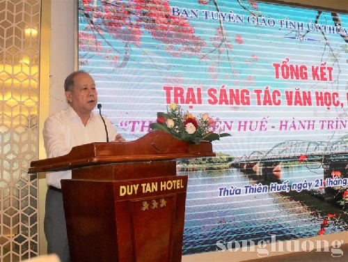 Chiều ngày 21/7, Ban Tuyên giáo Tỉnh ủy Thừa Thiên Huế đã tổ chức lễ bế mạc trại sáng tác về chủ đề “Thừa Thiên Huế - Hành trình và khát vọng” năm 2023. Tham dự có đồng chí Phan Ngọc Thọ - Phó Bí thư thường trực Tỉnh uỷ, đồng chí Hoàng Khánh Hùng - Trưởng Ban Tuyên giáo Tỉnh uỷ.