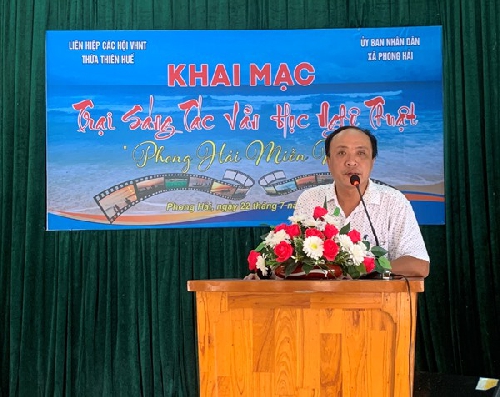 Sáng 22/7, Liên hiệp các Hội Văn học Nghệ thuật tỉnh Thừa Thiên Huế đã phối hợp với UBND xã Phong Hải (huyện Phong Điền, tỉnh Thừa Thiên Huế) tổ chức khai mạc trại sáng tác văn học nghệ thuật với chủ đề "Phong Hải miền nhớ" năm 2023.