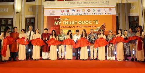 Tối 2/8, tại Trường đại học Nghệ thuật, Đại học Huế diễn ra triển lãm mỹ thuật quốc tế với chủ đề “Sống cùng di sản”. Đây là một trong những hoạt động hưởng ứng của Hội thảo quốc tế Kết nối với Việt Nam lần thứ 14 được tổ chức tại Huế.
