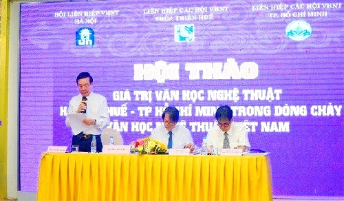 Sáng ngày 24/5, tại thành phố Huế đã diễn ra Hội thảo "Giá trị Văn học nghệ thuật Hà Nội - Huế - Thành phố Hồ Chí Minh trong dòng chảy Văn học nghệ thuật Việt Nam. Đây là hoạt động diễn ra trong khuôn khổ lễ ký kết phối hợp hoạt động giữa Hội Liên hiệp VHNT Hà Nội, Liên hiệp các Hội VHNT TP.HCM, Liên hiệp các Hội VHNT Thừa Thiên Huế.