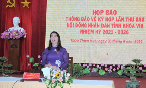 Sáng ngày 30/6, Thường trực Hội đồng Nhân dân tỉnh tổ chức Họp báo thông báo về kỳ họp lần thứ 6, Hội đồng Nhân dân tỉnh Thừa Thiên Huế khóa VIII, nhiệm kỳ 2021 - 2026. Đồng chí Nguyễn Thị Ái Vân – Tỉnh ủy viên, Phó Chủ tịch HĐND tỉnh chủ trì cuộc họp.