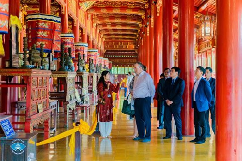 Sáng ngày 19/10, trong khuôn khổ chuyến thăm và làm việc tại tỉnh Thừa Thiên Huế, Ông Pierre-Yves Jeholet, Bộ trưởng-Thủ hiến Chính phủ Cộng đồng người Bỉ nói tiếng Pháp Wallonie-Bruxelles cùng Đoàn công tác đã đến tham quan Đại Nội Huế.
