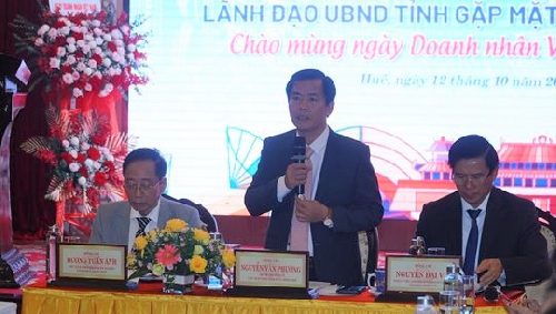 Sáng ngày 12/10, lãnh đạo tỉnh Thừa Thiên Huế đã tổ chức buổi gặp mặt doanh nghiệp nhân ngày Doanh nhân Việt Nam (13/10). Tham dự có đồng chí Nguyễn Văn Phương – Phó Bí thư tỉnh ủy, Chủ tịch UHND tỉnh Thừa Thiên Huế, đại diện các Sở ban ngành cùng hơn 200 đại diện các doanh nghiệp trên địa bàn tỉnh.