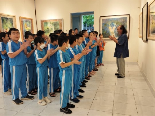 Sáng ngày 23/9, phòng tranh triển lãm “ A! Ngày xưa” đã đón các em học sinh trường Tiểu học Lê Lợi đến tham quan và giao lưu với họa sĩ Đặng Mậu Tựu.