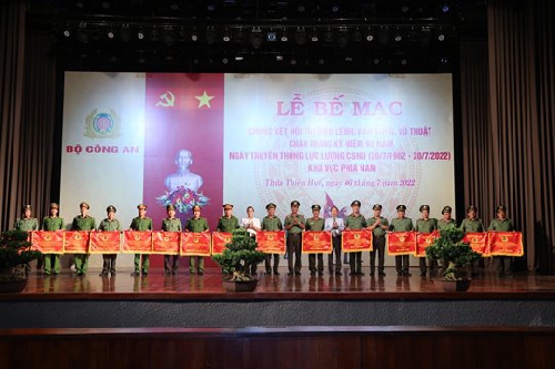 Chiều 6/7, tại nhà hát Sông Hương, TP Huế, Bộ Công an tổ chức lễ bế mạc Chung kết Hội thi Điều lệnh, bắn súng, võ thuật CAND - Khu vực phía Nam, năm 2022.