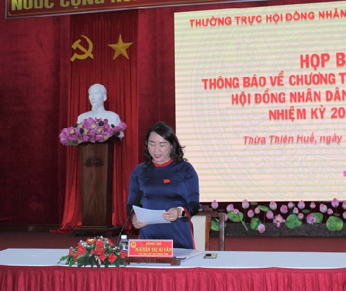 Chiều ngày 05/07, tại Hội trường UBND tỉnh, Hội đồng nhân dân tỉnh Thừa Thiên Huế đã tổ chức buổi họp báo thông báo về nội dung kỳ họp lần thứ 4 HĐND tỉnh khóa VIII, nhiệm kỳ 2021-2016. Phó Chủ tịch HĐND tỉnh Nguyễn Thị Ái Vân chủ trì cuộc họp.