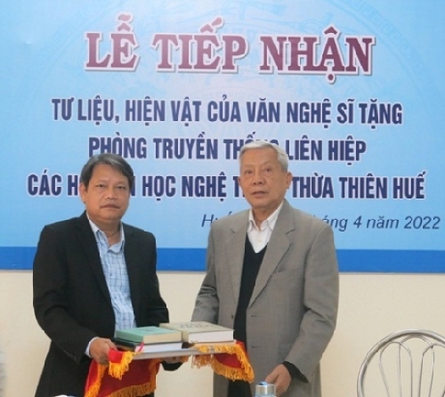 Sáng 21/4, Liên hiệp các Hội Văn học Nghệ thuật Thừa Thiên Huế đã tổ chức buổi lễ tiếp nhận tư liệu, hiện vật của các văn nghệ sĩ Huế trao tặng cho phòng truyền thống của Liên hiệp Hội.