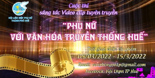 Hội Liên hiệp Phụ nữ Thành phố Huế vừa tổ chức Cuộc thi sáng tác Video clip tuyên truyền “Phụ nữ với văn hóa truyền thống Huế” nhân dịp kỷ niệm 112 năm Ngày Quốc tế phụ nữ, 1982 năm khởi nghĩa Hai Bà Trưng và chào mừng Đại hội đại biểu Phụ nữ Toàn quốc lần thứ XIII, nhiệm kỳ 2022 – 2027, hướng đến kỷ niệm 47 năm ngày giải phóng quê hương Thừa Thiên Huế.