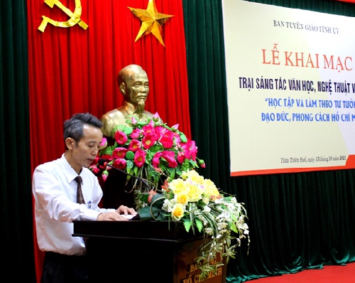Sáng 15/10, tại hội trường Bảo tàng Hồ Chí Minh Thừa Thiên Huế, Ban Tuyên giáo Tỉnh ủy, Liên hiệp các Hội VHNT tỉnh đã tổ chức Lễ Khai mạc trại sáng tác VHNT chủ đề “Học tập và làm theo tư tưởng, đạo đức, phong cách Chủ tịch Hồ Chí Minh”. Tham dự có ông Hoàng Khánh Hùng - UVTV, trưởng Ban Tuyên giáo Tỉnh ủy.