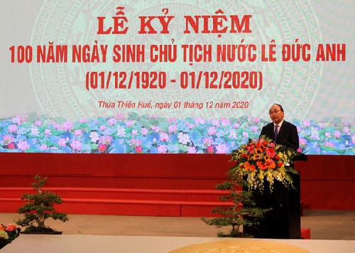 Sáng ngày 01/12, tại tỉnh Thừa Thiên Huế, Ban Chấp hành Trung ương Đảng Cộng sản Việt Nam, Quốc hội, Chủ tịch nước, Chính phủ nước Cộng hòa xã hội chủ nghĩa Việt Nam, Uỷ ban Trung ương Mặt trận Tổ quốc Việt Nam và tỉnh Thừa Thiên – Huế tổ chức trọng thể Lễ kỷ niệm 100 năm Ngày sinh Chủ tịch nước Lê Đức Anh (1/12/1920-1/12/2020).