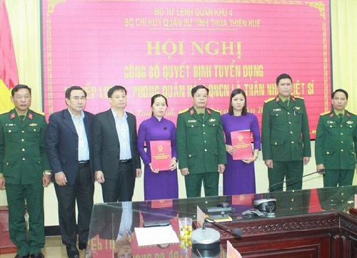 Ngày 8/12, Bộ chỉ huy Quân sự tỉnh Thừa Thiên Huế vừa tổ chức hội nghị công bố quyết định tuyển dụng và trao quân hàm quân nhân chuyên nghiệp cho thân nhân các liệt sỹ hy sinh khi thực hiện nhiệm vụ cứu hộ, cứu nạn tại Thủy điện Rào Trăng 3 (xã Phong Xuân, huyện Phong Điền, tỉnh Thừa Thiên Huế).