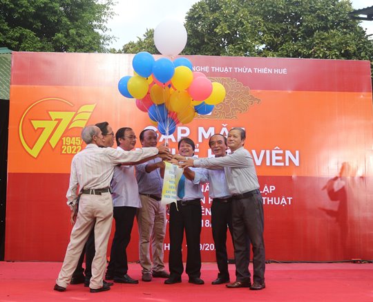 | Chủ tịch Liên hiệp Hội và Chủ tịch các Hội Chuyên ngành thành viên cùng thả bóng bay với mong muốn nền văn học nghệ thuật tỉnh Thừa Thiên Huế sẽ ngày càng phát triển |