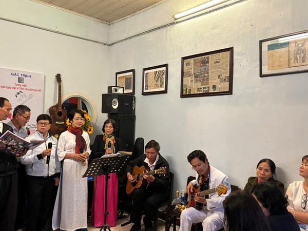 Trong không gian nhỏ nơi căn nhà xưa của Trịnh Công Sơn ở góc đường Nguyễn Trường Tộ đêm nay vang vọng những tiếng hát, tiếng Guitar mộc mạc, tiếng kèn Harmonica, và là nơi mà nhà thơ Lê Huỳnh Lâm, người đang chăm chút giữ gìn từng dấu vết ký ức về Trịnh từ những bài hát vang danh đã mờ nhòe sắc màu thời gian cùng sự kết nối với nhân chứng sống là hình ảnh danh ca Khánh Ly khi bà trở về thăm Huế ở tuổi 80 và đến Gác Trịnh vào một ngày tháng 8/2024 mà anh Lê Huỳnh Lâm chia sẻ.