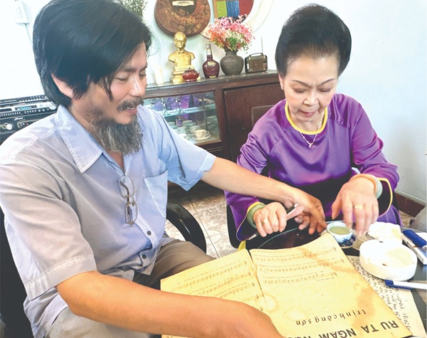 Nhà thơ Lê Huỳnh Lâm và Ca sĩ Khánh Ly trong chuyến về thăm Huế tại Gác Trịnh trước đó