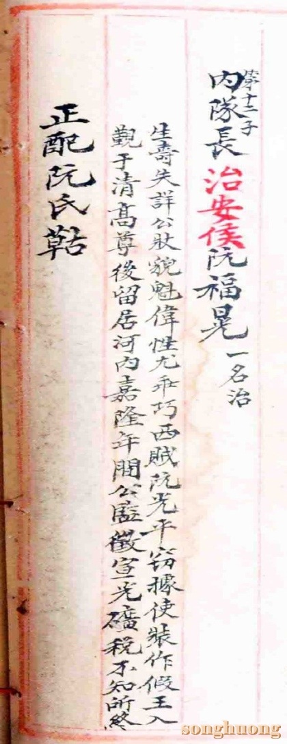 奐郡公第十二子: 內隊長治安侯阮福晃 (一名:治)