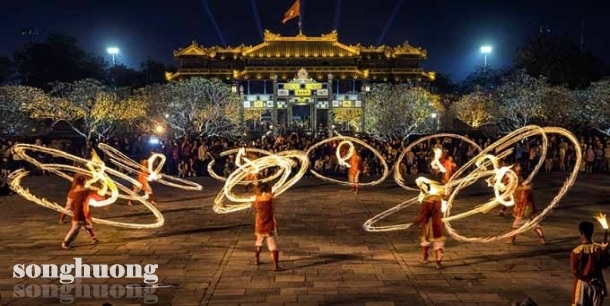 Giải A chuyên ngành Nhiếp ảnh được trao cho tác phẩm “Đồng hỏa hoàng cung” của tác giả Lê Tấn Thanh. Ảnh được chụp vào đêm 22 tháng 4 năm 2017 tại sân Điện Thái Hòa - Đại Nội Huế, vào dịp Trung tâm Bảo tồn Di tích Cố đô Huế mở cửa Chương trình tham quan “Đại Nội về đêm”, nhằm quảng bá, thu hút khách đến với di tích Huế. Múa Lửa là chương trình biểu diễn nằm trong “Nghi Thức Lễ Đổi Gác” của chương trình “Đại Nội về đêm”, được tái hiện lại để giới thiệu với du khách, tạo một điểm nhấn mạnh mẽ trong hành trình tham quan di sản Huế. Múa lửa, từ thuở xưa có ý nghĩa tượng trưng cho văn minh, chân lý, lẽ phải, cái thiện, xua đuổi cái ác; trở thành những tín ngưỡng thiêng liêng, lửa còn biểu tượng cho khát vọng chiến thắng, cho sức trẻ, cho sự vươn lên của con người. Tác phẩm “Đồng hỏa hoàng cung” thể hiện hết sức thành công vũ điệu múa lửa. Bức ảnh thu được khoảnh khắc sinh động của những vòng tròn lửa hân hoan, xuất hiện trong không gian hoàng cung Huế đã rực rỡ ánh đèn.