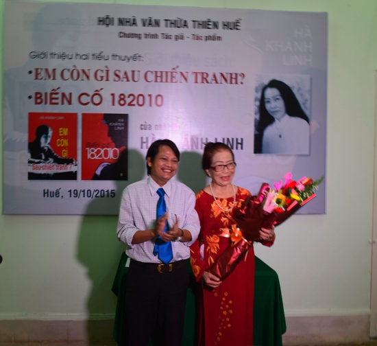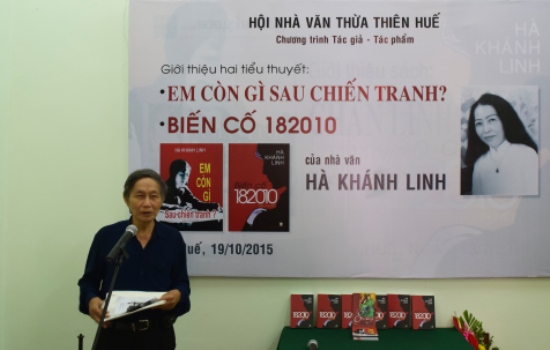 Chiều ngày 19/10, Hội Nhà văn Thừa Thiên Huế đã phối hợp với Tạp chí Sông Hương tổ chức buổi giới thiệu hai cuốn sách “Em còn gì sau chiến tranh”  và “Biến cố 182010” của nhà văn Hà Khánh Linh.