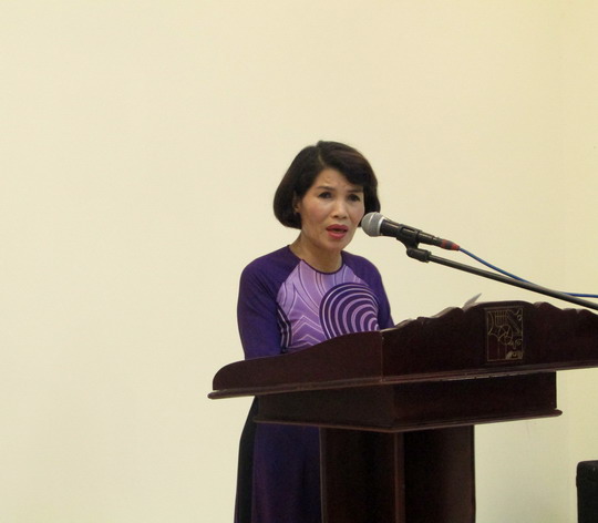 | Chị Như Nguyện - người bạn của tác giả ngâm thơ tại buổi giới thiệu sách |