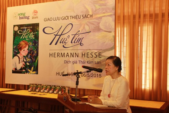 Chiều 6.5, tại Trung tâm Văn hóa Phật giáo Liễu Quán (Thành phố Huế), Tạp chí Sông Hương phối hợp với NXB Kim Đồng tổ chức chương trình giao lưu giới thiệu tập Huệ tím của nhà văn Hermann Hesse qua sự chuyển ngữ của dịch giả Thái Kim Lan.