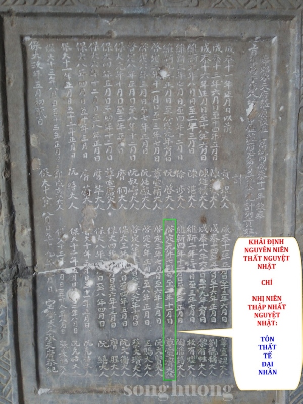 Ngày tốt tháng 10 năm Thành Thái thứ 7 (1895). Nam: Tôn Thất Doanh, Tôn Thất Tế kính lập.