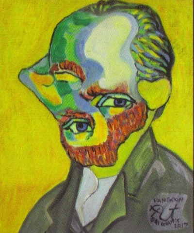 Họa sĩ Nguyễn Đại Giang vẽ chân dung của danh họa Van Gogh theo lối vẽ ngược đầy độc đáo của ông. Bức tranh thu hút người xem bởi sự cải đổi ngoạn mục trên khuôn mặt của Van Gogh với một tỉ lệ thích hợp tuy đã bị đảo ngược giữa đôi mắt, sống mũi, cằm và gò má.