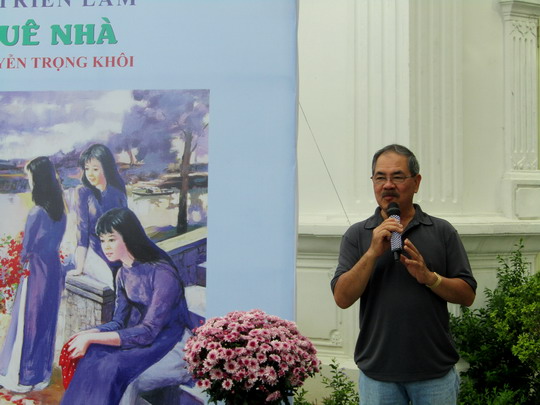 Họa sĩ Nguyễn Trọng Khôi chia sẻ: "Tôi là một người rời xa quê nhà nhiều năm nên không thể vịn vào hình ảnh quê hương để sáng tác mà phải tìm ra một mẫu số chung để hòa hợp với xung quanh. Không thể vin vào dòng sông uốn lượn, bóng con đò hay những mái tranh, những hoài niệm tốt đẹp khắc họa từ ấu thơ...mà luôn tìm những trăn trở, những góc khuất trong tâm hồn, nỗi cô đơn và thân phận".