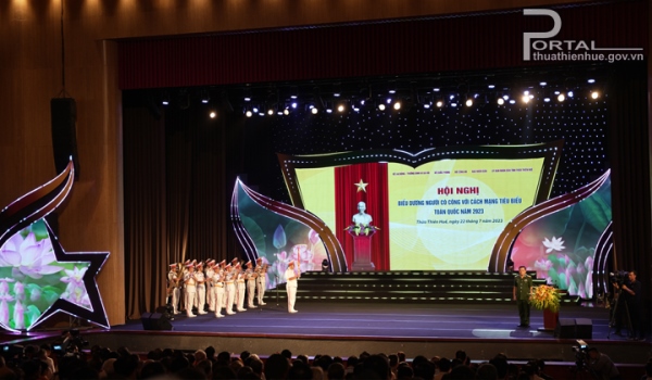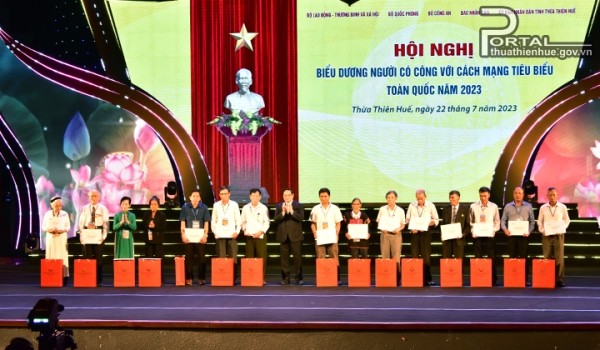 Sáng ngày 22/7, Hội nghị biểu dương người có công với cách mạng tiêu biểu toàn quốc năm 2023 đã diễn ra tại tỉnh Thừa Thiên Huế. Chương trình do Bộ Lao động-Thương binh và Xã hội (LĐTBXH) phối hợp Bộ Quốc phòng, Bộ Công an, Báo Nhân Dân, Đài Truyền hình Việt Nam và UBND tỉnh Thừa Thiên Huế tổ chức.