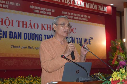 hà nghiên cứu Nguyễn Đắc Xuân thuyết trình tham luận về cung điện Đan Dương tại hội thảo