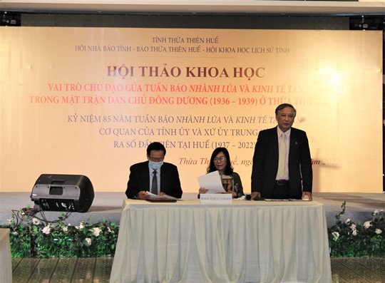 Sáng ngày 12/04, Nhân kỷ niệm 85 năm ngày tuần báo Nhành Lúa (15/01/1937 – 15/01/2022) và tuần báo Kinh tế Tân văn ra số đầu tiên (9/01/1937 – 9/01/2022), Hội Nhà báo tỉnh phối hợp với Báo Thừa Thiên Huế, Hội Khoa học Lịch sử tỉnh và các cơ quan ban ngành liên quan tổ chức hội thảo khoa học “ Vai trò chủ đạo của báo Nhành Lúa và Kinh tế tân văn trong Mặt trận Dân chủ Đông Dương (1936 – 1939) ở Thừa Thiên Huế”.