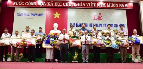 Chiều 23/7, UBND Thừa Thiên Huế đã tổ chức Lễ Truy tặng danh hiệu “Bà mẹ Việt Nam anh hùng” và trao tặng “Huân chương Độc lập” cho các gia đình liệt sĩ đã có nhiều cống hiến, hy sinh vì sự nghiệp giải phóng dân tộc, xây dựng và bảo vệ Tổ quốc.