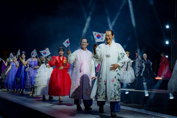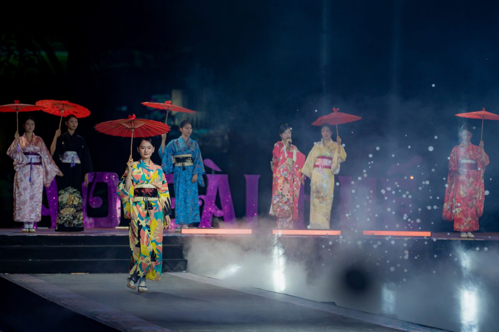 Một trong những điểm nhấn đặc biệt của đêm hội là màn giao lưu văn hóa Đông Á, nơi Áo dài Việt Nam duyên dáng sánh vai cùng Kimono Nhật Bản, Hanbok Hàn Quốc và Hán phục Trung Hoa. Đây không chỉ là một cuộc trình diễn thời trang mà còn là cuộc đối thoại văn hóa đầy ý nghĩa, khẳng định vẻ đẹp và giá trị riêng của quốc phục mỗi dân tộc.