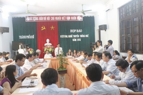 Nhằm đẩy mạnh công tác tuyên truyền quảng bá về Festival Nghề truyền thống Huế 2013 và các hoạt động trong khuôn khổ chuỗi hoạt động Kỷ niệm 40 năm thiết lập quan hệ ngoại giao Việt Nam - Pháp (12/41973 - 12/42013), UBND thành phố Huế, Ban tổ chức Festival nghề truyền thống Huế 2013 đã tổ chức buổi họp báo giới thiệu về Festival Nghề truyền thống Huế vào chiều ngày 25/4 tại Hội trường Ủy ban MTTQ Việt Nam, số 5 đường Hà Nội, Huế.