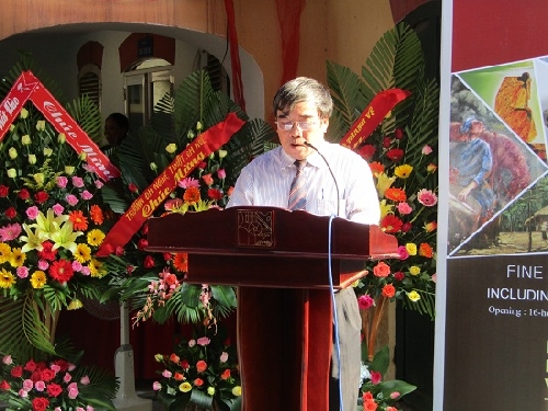 | Nhà văn Hồ Đăng Thanh Ngọc - Tổng Biên tập Tạp chí Sông Hương đã giới thiệu về triển lãm Ngày mới |