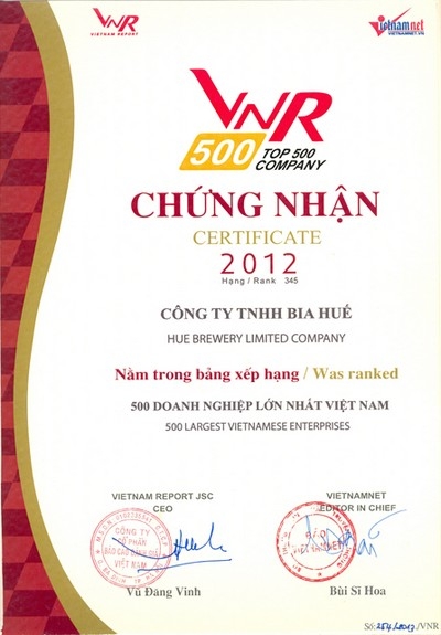 Sáng 18/1/2013, tại Trung tâm Hội nghị Quốc gia Mỹ Đình (Thủ đô Hà Nội), Công ty Cổ phần báo cáo đánh giá Việt Nam (Vietnam Report) phối hợp với báo điện tử Vietnamnet tổ chức lễ trao giải VNR500.