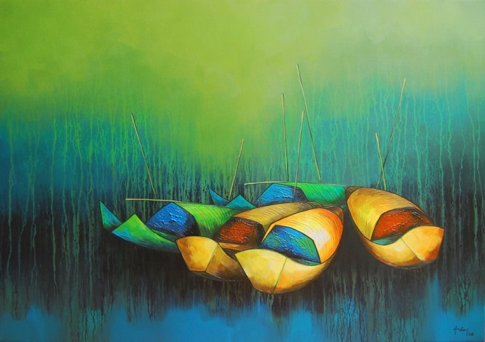 | Tác phẩm Đò (Acrylic) của họa sĩ Hoàng Phúc Quý |
